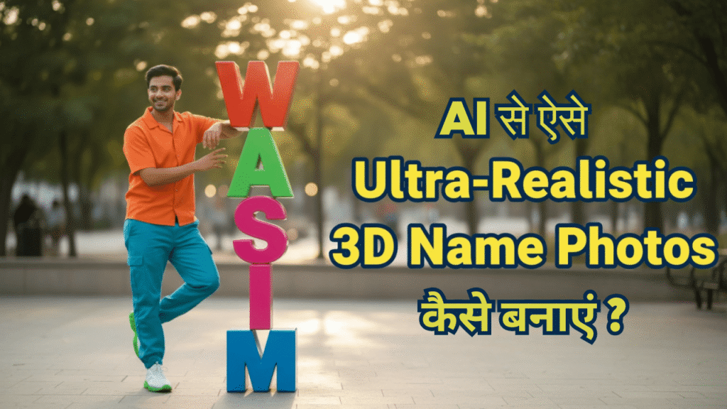 इन्हीं में से एक ट्रेंड है—ऐसी इमेज बनाना जिसमें एक मॉडल के साथ 3D Text भी शामिल होता है, जो बिल्कुल असली वस्तु की तरह दिखाई देता है।